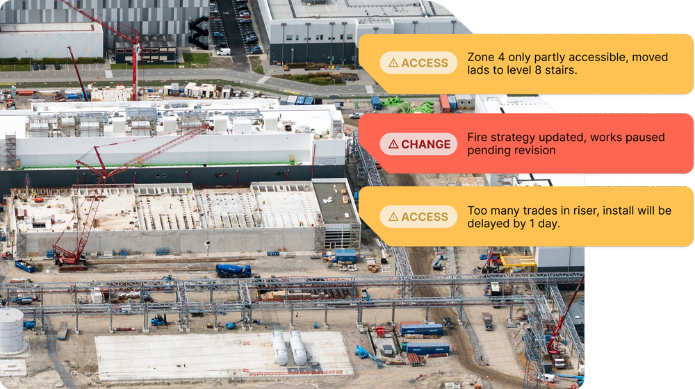 Surfaces productivity disruptions early with a live, searchable log of disruptions, delays, and events.